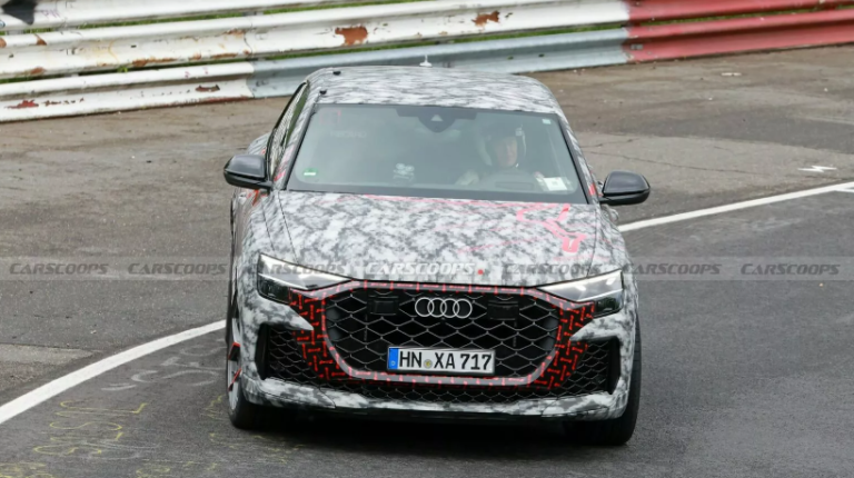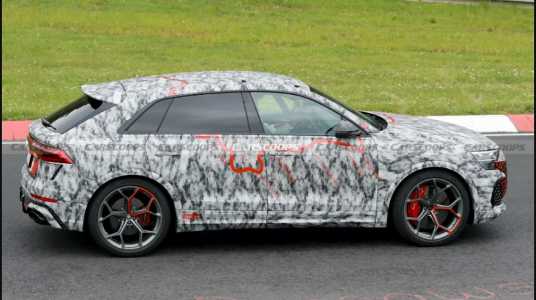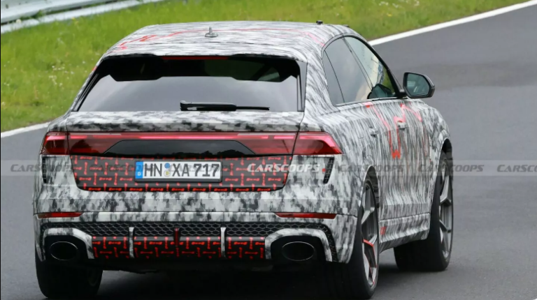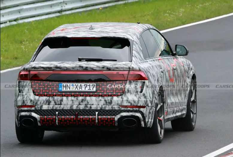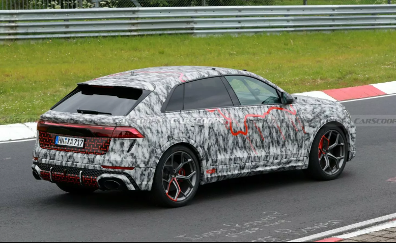 Увагу шпигунів привернув камуфляж, виконаний у забарвленні Нюрбургрингу, але не він один. Зміни у кросовера також суттєві. Так, рестайлінговий RS Q8 отримав більш виразну передню частину з іншою решіткою радіатора та більш спортивним бампером зі збільшеним повітрозабірником. Ще видно фари з тоншими ДХО та задні ліхтарі зі зміненою графікою. Задній бампер отримав новий стоп-сигнал.