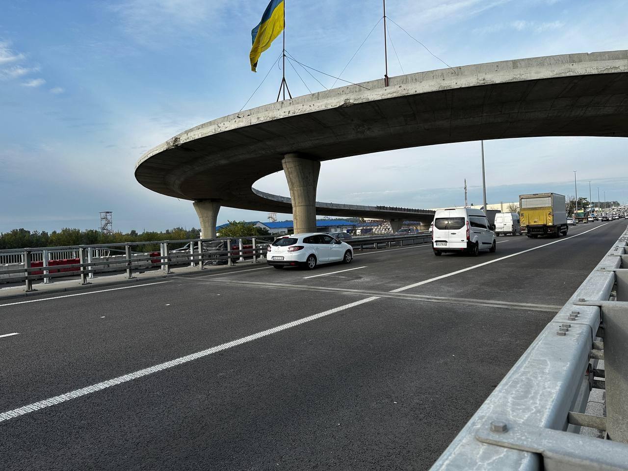 Оскільки бетонні опори лівого проїзду не підлягали відновленню, з травня минулого року рух здійснювався спеціально встановленою тимчасовою конструкцією. Лівий проїзд довелося зводити з нуля, тоді як праву частину відновили. Рух по ній відкрили ще в листопаді 2022 року.