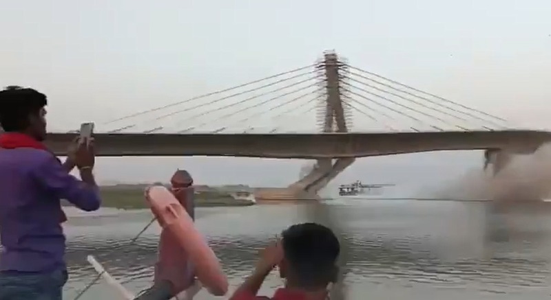 Спочатку у води Гангу обрушилися опори та один із фрагментів дорожнього полотна у центрі мосту. Потім впали прольоти, що трималися на них. За деякими даними, у річці опинилися не менше 30 плит та кілька стовпів.