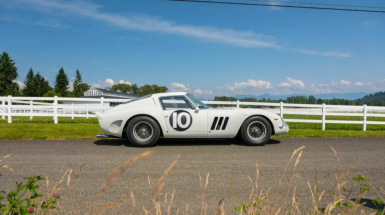 Загалом було виготовлено 36 екземплярів Ferrari 250 GTO, але лише один білого кольору. Більше того, це один із лише восьми автомобілів з правим кермом. Спортивний автомобіль також має багату гоночну історію. У 1962 та 1963 роках він посів друге місце у гонці RAC Tourist Trophy у Гудвуді, а пізніше виграв Guards Trophy на трасі Brands Hatch. За кермом цього Ferrari були такі пілоти, як Джек Сірс, Грем Гілл та Річі Гінтер.