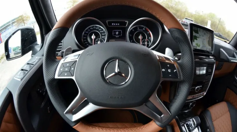 В арсенале внедорожника – раздаточная коробка, два межосевых и три межсколесных дифференциала. Клиренс Мерседес Гелендваген достигает 460 мм.