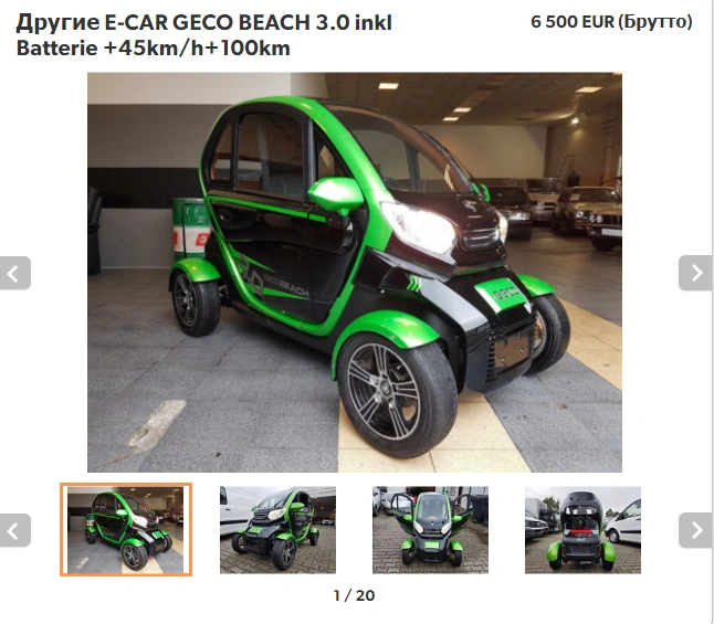 Недорогий електрокар для міста в стилі Renault Twizy. Нам він дуже подобається. Щоправда, потужність невелика - всього 4 сили. Зате пробіг 3 тис. км. Оцінили такий EV, випущений в 2018 році, в 6500 євро.