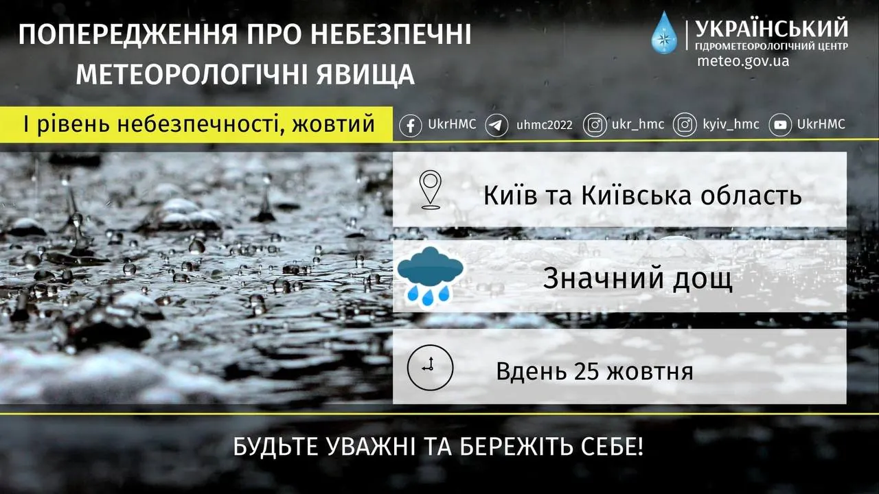 В Україну завтра, 25 жовтня, увірветься новий атмосферний фронт, який принесе із собою похолодання та дощі. Погода погіршиться у низці областей, у тому числі у Києві та Київській області.