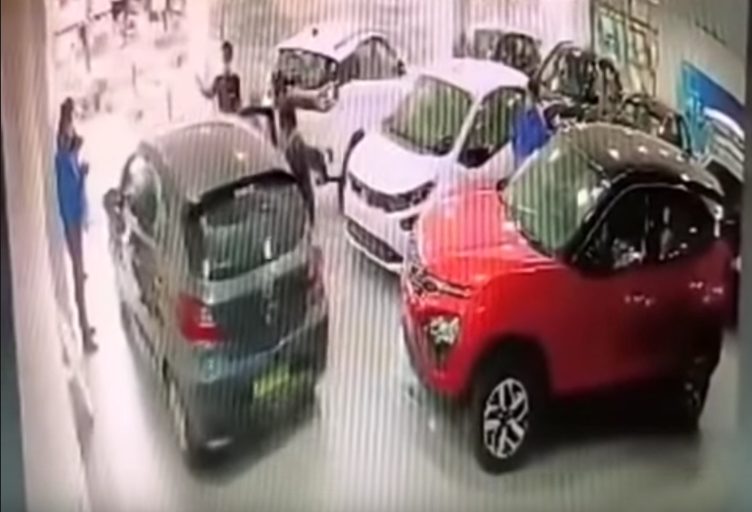 Завершивши угоду, чоловік сів за кермо і очікував дозволу на виїзд з салону. Консультант давав йому останні поради і розповідав про ключові особливості моделі. У цей момент водій включив передачу і натиснув на педаль газу. Машина різко рвонула з місця і вилетіла крізь відчинені двері. Представники компанії не встигли відреагувати і опустити рампу. Хетчбек на повному ходу впав на тротуар.