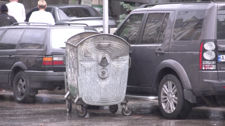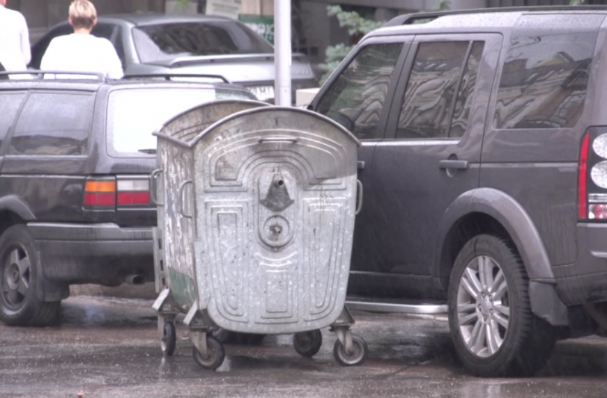 Неуправляемый мусорный бак нанес ущерб столичным автомобилистам (видео)