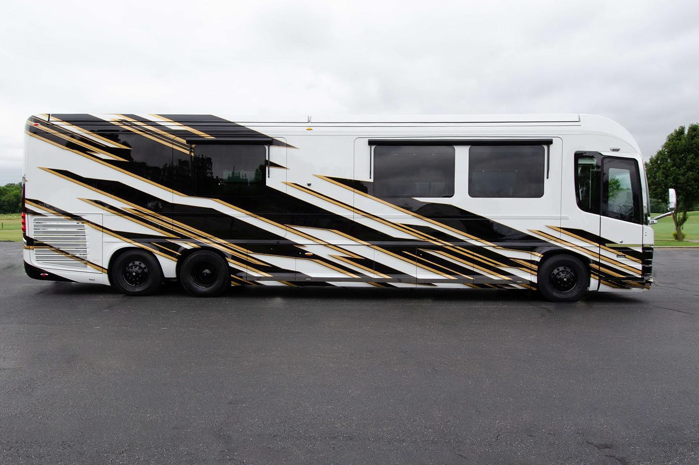Довжина машини – 13,7 м, а споряджена вага досягає 28712 кг. У його активі є кілька висувних елементів, зовнішній відсік з телевізором під масивним навісом з електроприводом та два проєктори, які також можуть виводити зображення на вулицю. У рух автомобіль наводить 605-сильний мотор Cummins X15, що працює в парі з 6-ступеневою коробкою Allison. Зробити їзду максимально комфортною дозволяє активна підвіска ZF та кермо EasiSteer.