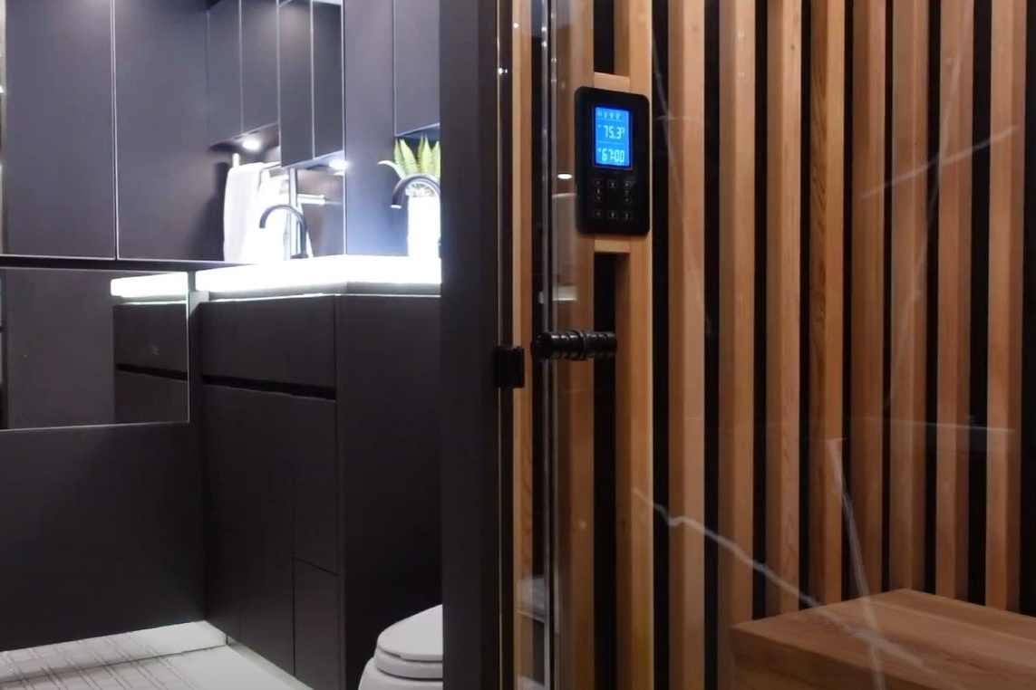 За словами творців, створення сауни виявилося найскладнішим завданням, яке коли-небудь стояло перед інженерами компанії, оскільки вона має цілу низку специфічних особливостей. Але тепер у компанії можуть з гордістю сказати, що це єдиний у світі моторхоум із сауною “на борту”.