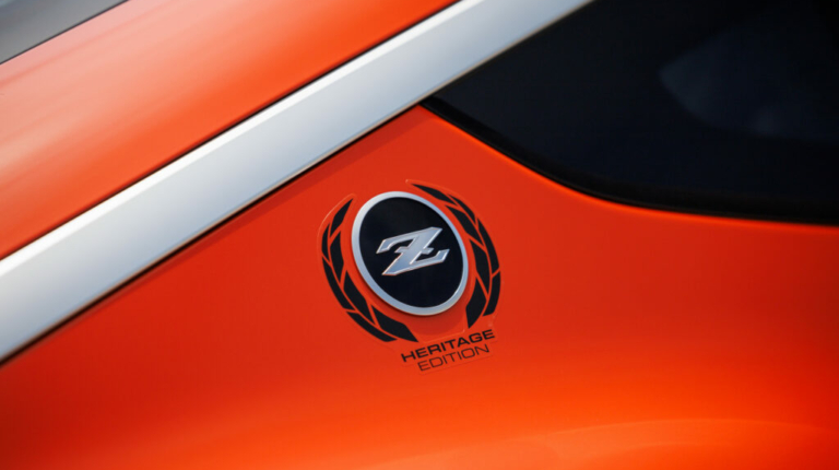 Nissan Z Heritage Edition легко дізнатися по яскравому помаранчевому забарвленню з декоративними смугами, новим чорним 19-дюймовим дискам оригінального дизайну і «двоповерховому» облицювання радіатора, що нагадує про перше покоління Datsun 240Z.