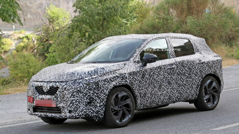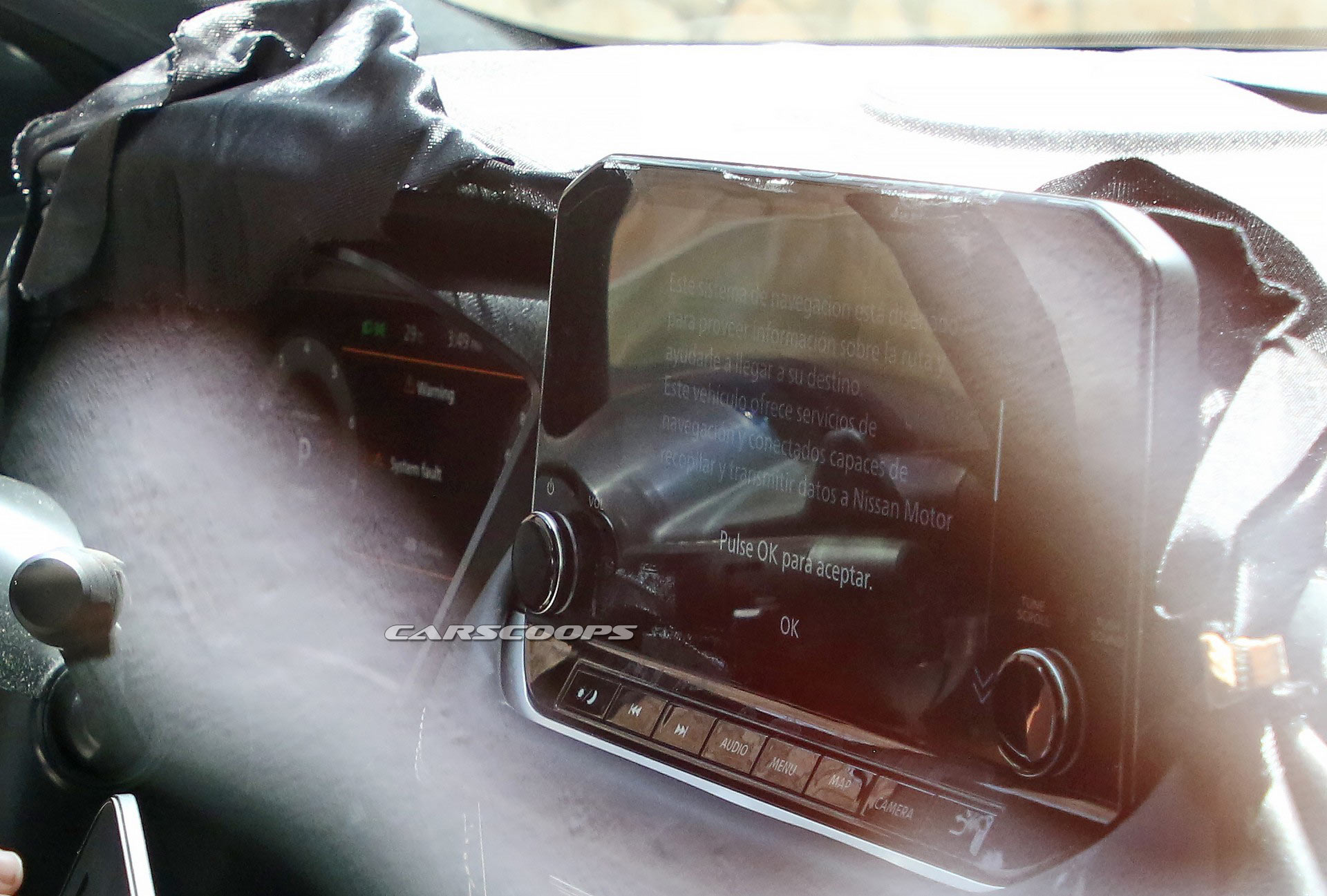 За чутками, в салоні Nissan Qashqai з’явиться цифрова приладова панель, проекційний дисплей, 9,0-дюймовий «летючий» екран мультимедіа з підтримкою Apple CarPlay, камери кругового огляду і бездротова зарядка – дещо з цього набору ми бачимо на шпигунському фото.