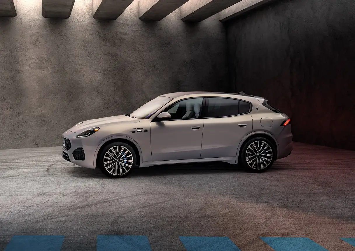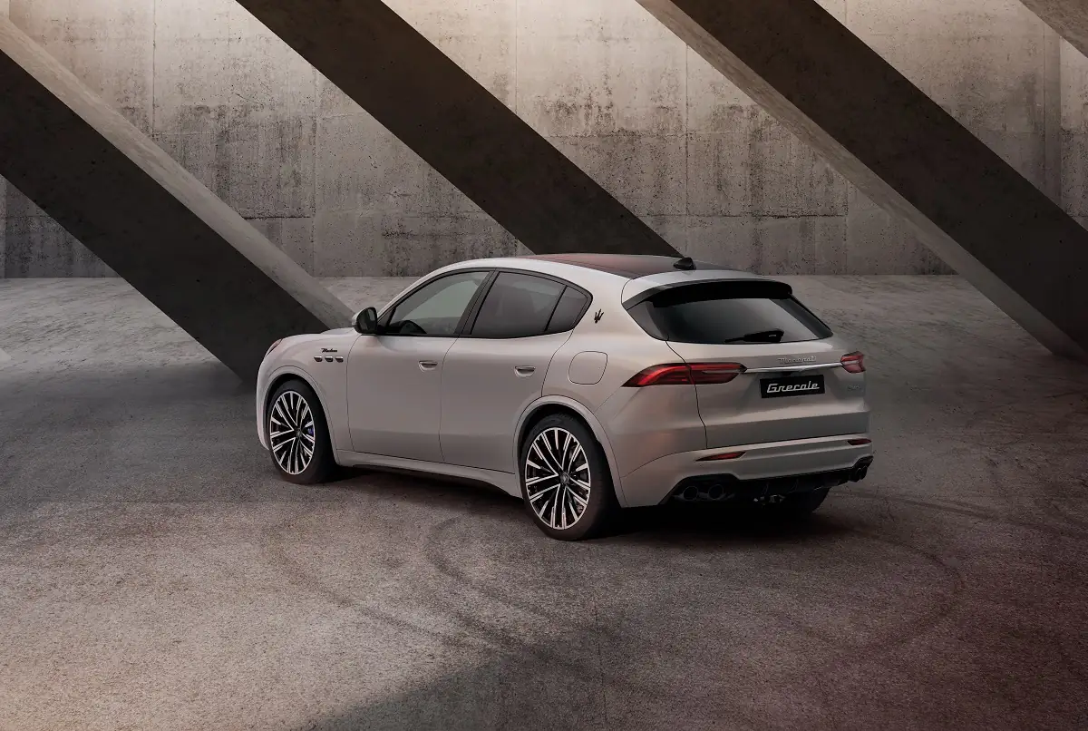Особливий дизайн. Елегантний профіль кузова з плавними лініями — це контраст між чистотою дизайну з такими елементами, як хромовані ручки дверей, і технічними компонентами, підкресленими використанням вуглецевого волокна та новим дизайном легкосплавних дисків Trident. Grecale з габаритними розмірами 4846 мм, шириною 1948 мм та висотою 1670 мм має вражаючий вигляд купе, адаптованого до розмірів позашляховика.