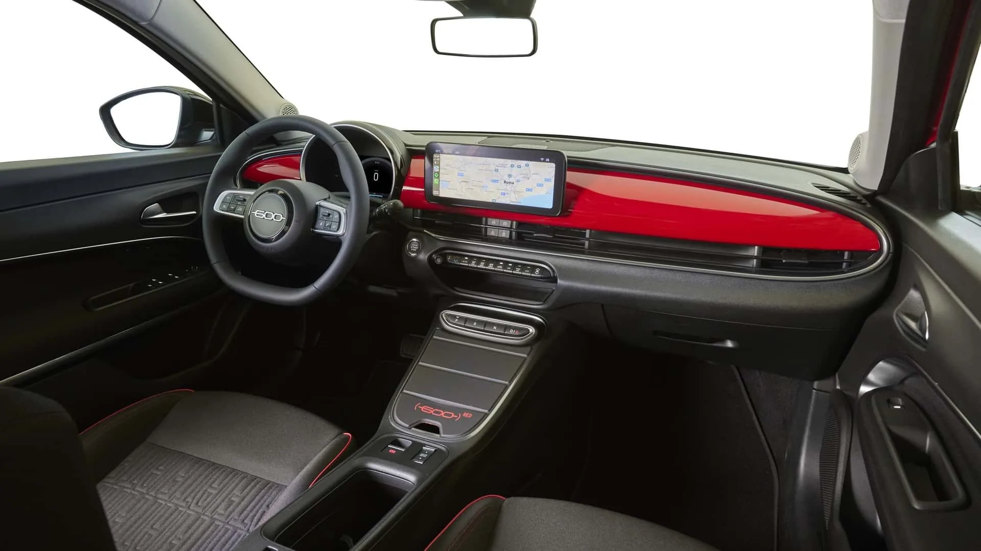 У салоні також присутні ретро-риси. Цифрова передня панель має нестандартну інтеграцію. Також є мультимедійна система з 10,25-дюймовим екраном і підтримкою Apple CarPlay і Android Auto. Передня панель пофарбована в колір кузова, як у Fiat 600 1955 року. Сидіння електромобіля з функцією масажу та підігріву оздоблені синтетичною шкірою. Є система клімат-контролю, USB та USB-C порти, слот для бездротової зарядки смартфона та фонове підсвічування.