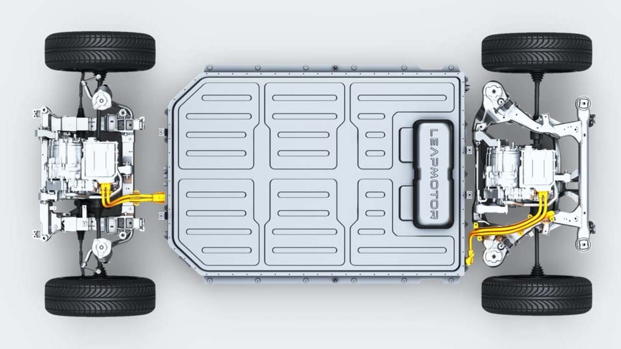 Новый Leapmotor C11 построен на базе платформы собственной разработки молодой компании. При колесной базе 2930 мм длина китайского кроссовера составляет 4750 мм, ширина – 1905 мм, высота – 1650 мм. Вариантов батарей две: на 76 кВтч и 90 кВтч. Базовая версия комплектуется одним электродвигателем мощностью 272 л.с. (360 Нм), вращающим заднюю ось. С места до 100 км/ч такой кроссовер ускоряется за 7,9 с.
