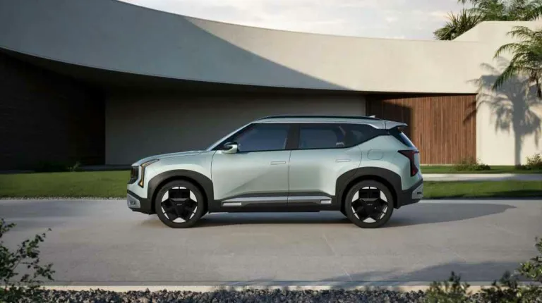 Збоку кросовер має явні риси EV5. Він отримав втоплені дверні ручки і пластиковий обвіс. Також можна відзначити подовжений спойлер на даху. В оновлену колірну палітру увійшли три нових відтінку: Iceberg Green, Gravity Gray і Matte Magma Red. Крім базової версії, новий Seltos запропонують в комплектації GT-Line і X-Line.