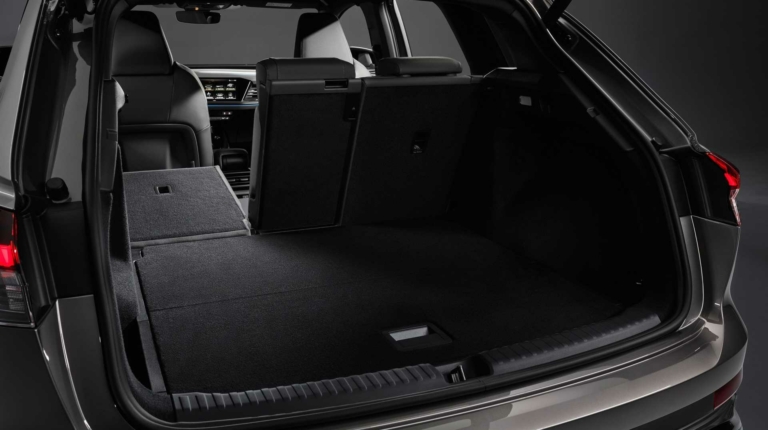 При той же колесной базе в 2760 мм новый кроссовер Ауди получился почти таким же, как ID.4. Его габариты – 4588 x 1865 x 1632 мм. Коэффициент лобового сопротивления – 0,28 у обычного кроссовера и 0,26 у купеобразной версии. Багажник Q4 e-tron вмещает 520 литров, Q4 Sportback e-tron – 535 литров. При сложенных спинках сидений заднего ряда – 1490 и 1460 л соответственно.