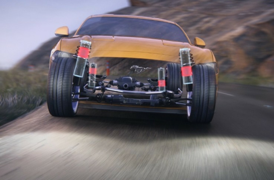Використання магнітореологічної рідини в амортизаторах MagneRide®, якими оснащений Mustang, забезпечує яскраві враження від керування автомобілем у поєднанні з плавністю ходу й належною керованістю. Датчики здійснюють моніторинг стану дорожнього покриття, а електромагніти контролюють часточки заліза, що плавають в оливі усередині амортизаторів.