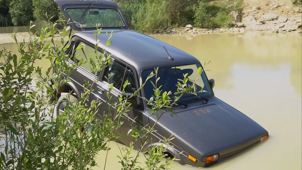 Спершу Ниву протестували на міських дорогах, а потім вирушили на бездоріжжя в кар'єр Тіксовер. Глибокі яри і густа трава виявилися легкими перешкодами. Блогер так захопився їздою, що не розрахував глибину невеликого водоймища, який зустрівся на шляху. Джонні вирішив, що це невелика калюжа, яку він з легкістю подолає. Однак на ділі все виявилося куди серйозніше.