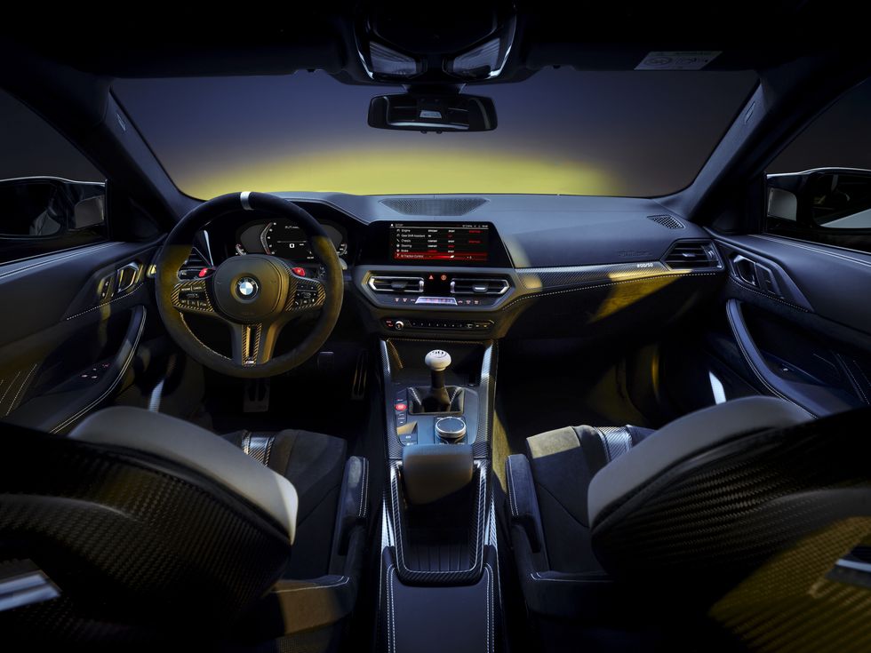 Передні фари з жовтими світлодіодними лазерними променями нагадують гоночний M4 GT3, а хитромудрі дротяні світлодіоди задніх ліхтарів — M4 CSL. У м’язистих колісних арках розташувалися золотисті колісні диски з центральною гайкою: 20 дюймів спереду та 21 дюйм позаду. «Взуте» купе у спеціально розроблені шини Michelin.