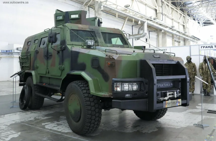 Новинка от киевской компании «Практика» построена на базе Iveco Eurocargo и имеет полную массу 15 т, что намного больше, чем у просто «Козака». Привод – на оба моста. В шинах применяются специальные вставки-кольца – Ran Flat, позволяющие передвигаться до 20 км даже со всеми пробитыми колесами. Экипаж составляет 11 человек. Автомобиль комплектуется 5,9-литровым турбодизелем мощностью 279 л.с., который развивает максимальный крутящий момент в 950 Нм в очень широком диапазоне оборотов: 1220 – 2200 в минуту. Коробка передач – механическая, 6-ступенчатая.