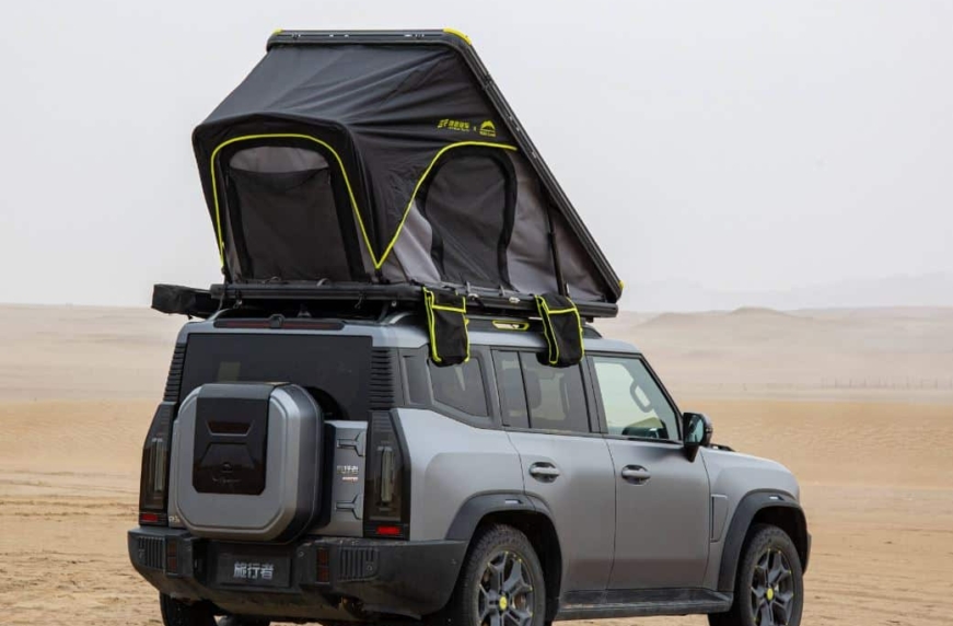 Салон оздоблений штучною замшею чорного, червоного, зеленого, оранжевого або коричневого кольору. У стандартній комплектації 15,6-дюймовий центральний екран із вбудованим чіпом Qualcomm Snapdragon 8155, 10,25-дюймова РК-панель приладів та 64-дюймовий панорамний люк. Також заявлені функції розпізнавання голосу та обличчя, підтримка 4G, оновлень програмного забезпечення «по повітрю» та дистанційного керування. У списку опцій — двомісний туристичний намет, який можна встановити прямо на даху.