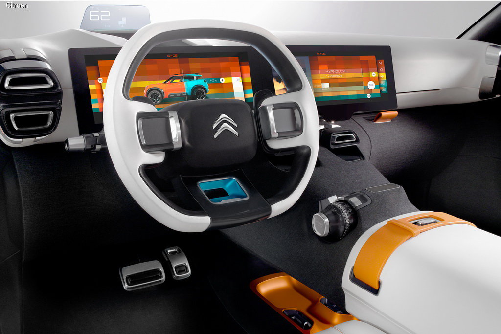 Дизайнеров компании Citroen всегда отличал свой уникальный взгляд на мир. Вот и в концепте Aircross нашли применение разнообразные стилистические изыски. Яркий многоцветный салон выделяется на фоне одноклассников и создает атмосферу праздника. Текстильные вставки удачно контрастируют с белой кожей и полированным алюминием.