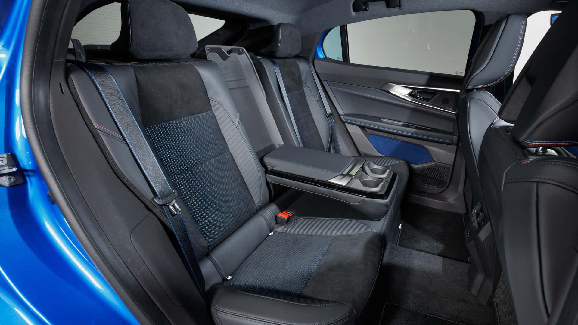 На кормі можна відзначити Y-подібні ліхтарі, бампер, що вміло приховує патрубки вихлопної системи, і похиле скло, яке оптимізує ефективність та усуває необхідність у двірниках. Кросовер їздить на стильних 20-дюймових легкосплавних дисках. Його запропонують у відтінках White Pearl, Alpine Blue, Flame Red, Diamond Black та Ceramic Grey.