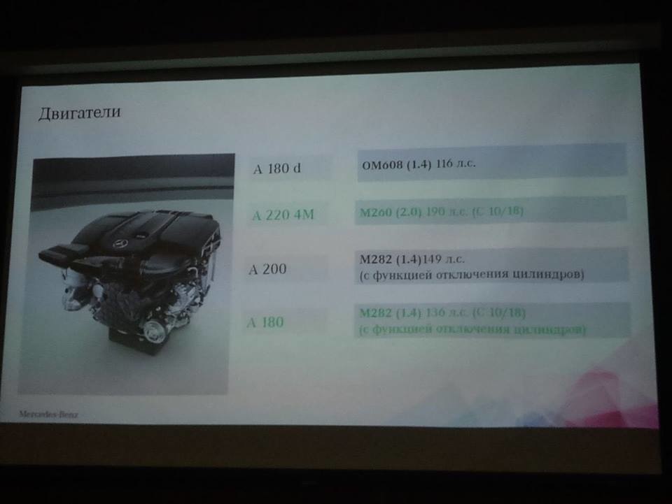Моторы Mercedes-Benz A-Class 2019 – два бензиновых (A 200 и A 220) и дизель (A 180 d). Их мощность – 149, 190 и 116 сил соответственно.