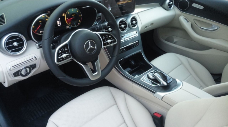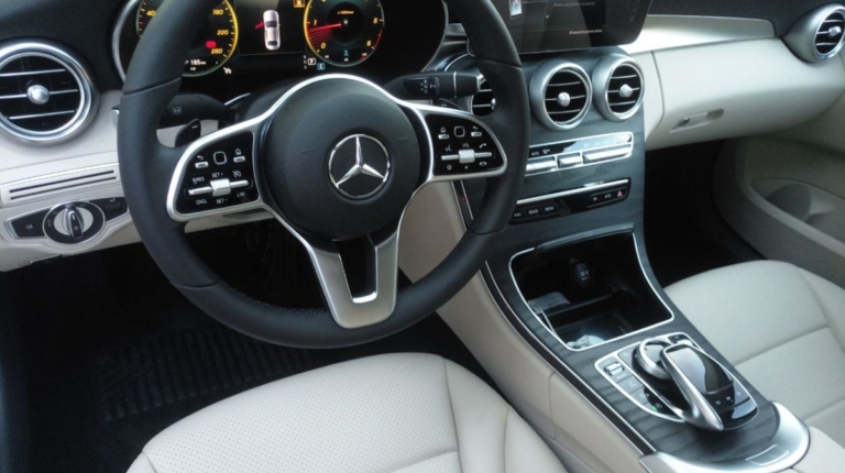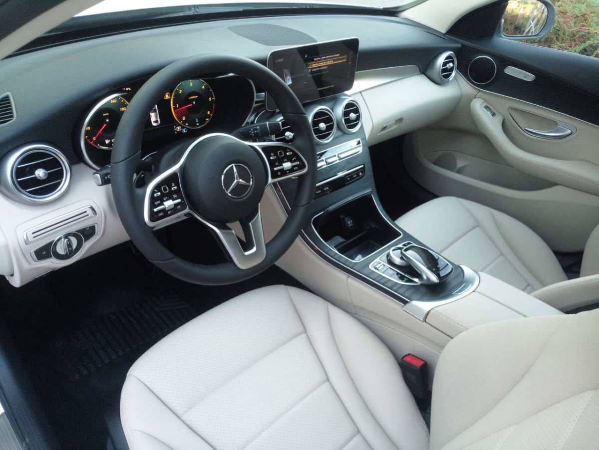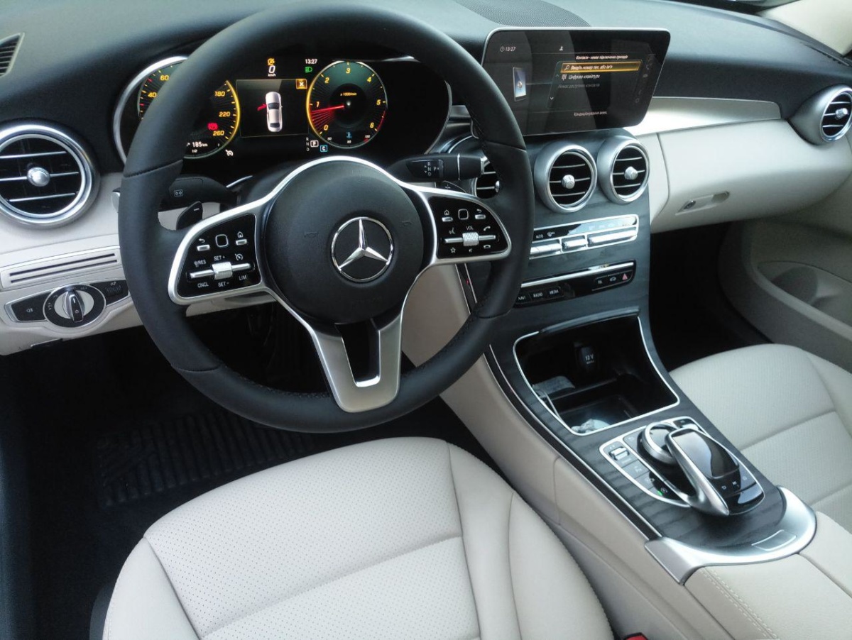 В интерьере свежий Mercedes-Benz C-class можно узнать благодаря новому рулевому колесу, увеличенному экрану мультимедийной системы и новым переключателям.
