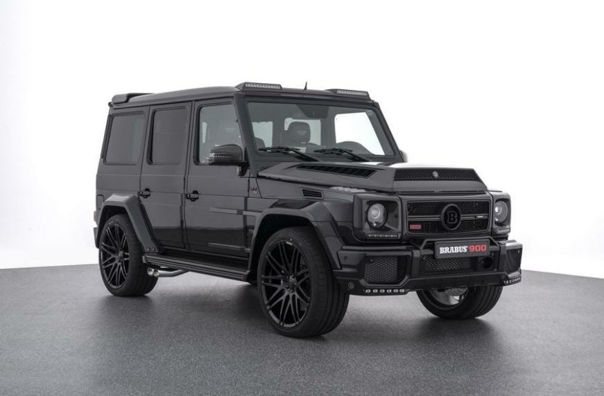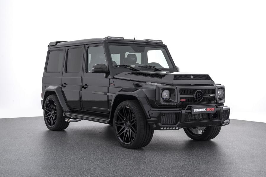 От более слабого G65 «девятисотая» версия от Брабус отличается агрессивным обвесом кузова, 23-дюймовыми колесами и грозным «горбом» на крышке капота.