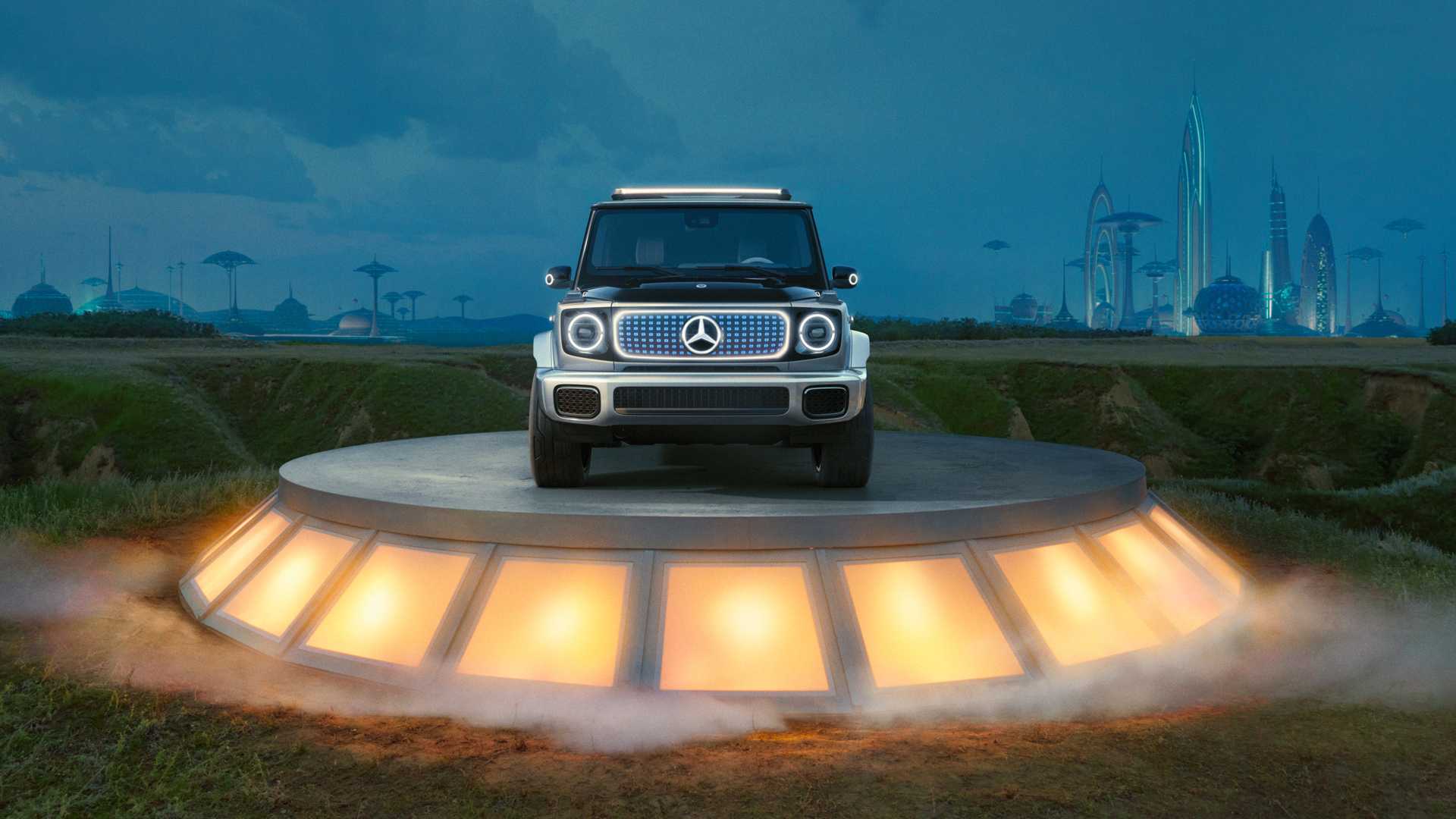 В основі Mercedes Concept EQG лежить звичайний серійний Гелендваген. Від звичної нам моделі він відрізняється великою панеллю на місці решітки радіатора, яка може світитися. Сюди ж можна віднести інші фари, інші бічні дзеркала, багажник на даху і ящик на дверцятах багажника, стилізований під кожух запасного колеса. За деякими даними, в ньому може зберігатися зарядний кабель.