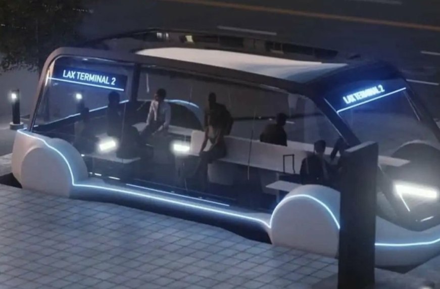 Опосередковано на приналежність прототипу компанії Tesla вказує логотип бренду на кермі. Ймовірно, проєкт електричного мікроавтобуса на 12 місць, включаючи водія, знаходиться на ранній стадії розробки. Прототип із практично повністю скляним кузовом дуже схожий на концепт, представлений The Boring Company у 2017 році. Він позиціонувався як 12-місний електромобіль, розроблений для системи Las Vegas Loop.