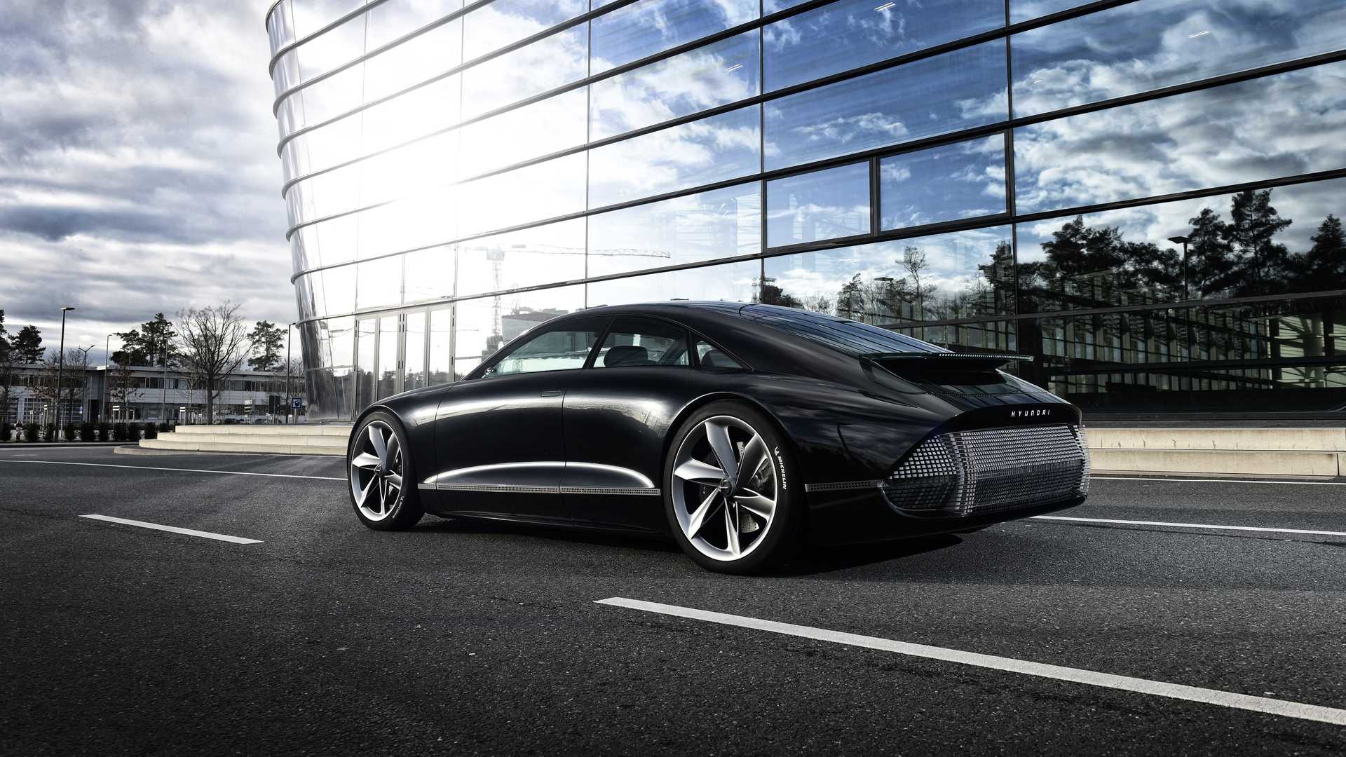 В частности, новинка получит обтекаемый аэродинамичный кузов. Особое внимание было уделено фарам, которые растянулись практически во всю длину капота. По низу кузова проходит хромированная полоса, которая добавляет модели изысканности. Также можно отметить контрастную крышу с плавником антенны, многоспицевые колесныхе диски и широкие боковые юбки. На рендере заметен логотип Hyundai, но в действительности на машине его может не оказаться – в компании решили вывести электромобили в отдельный бренд.