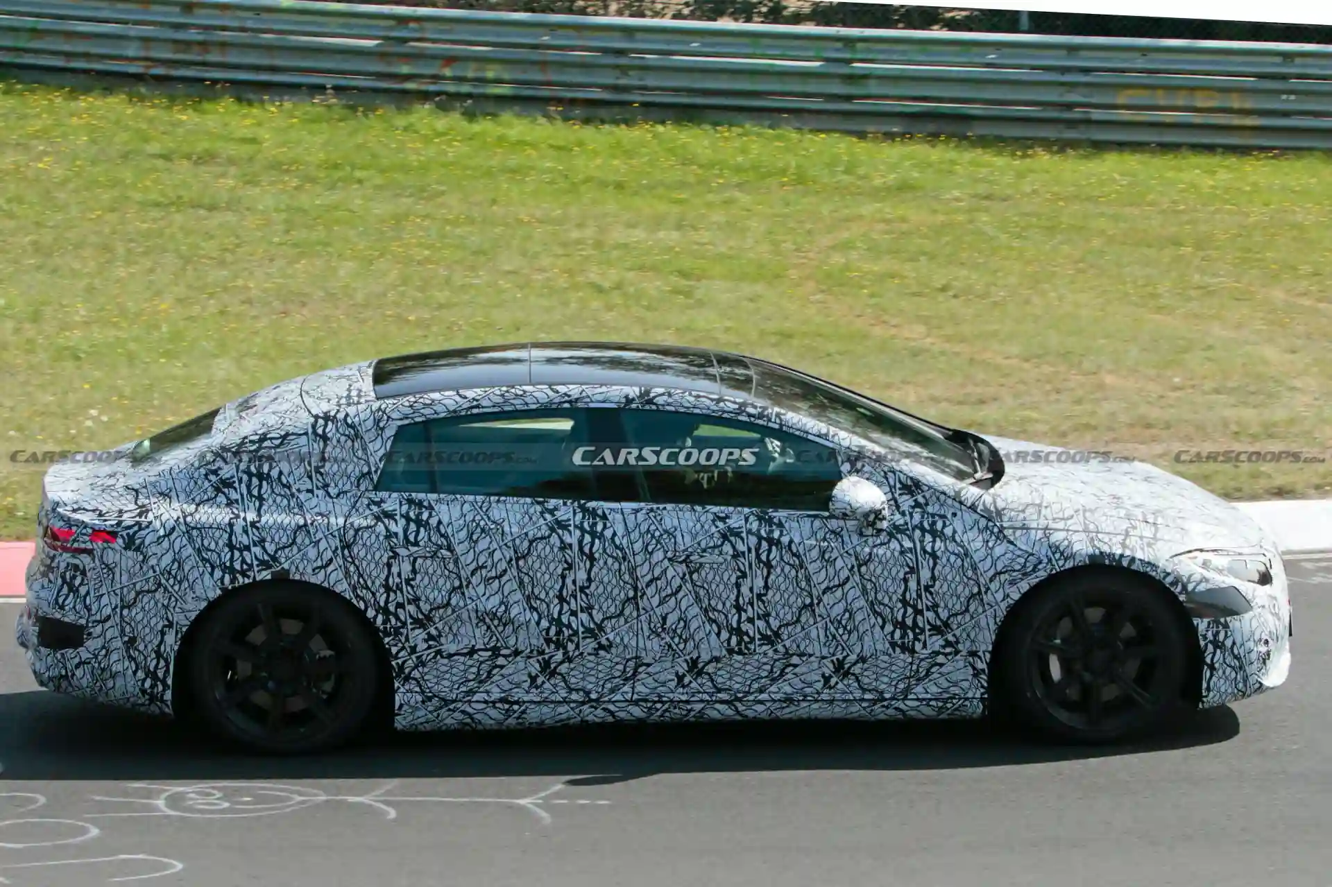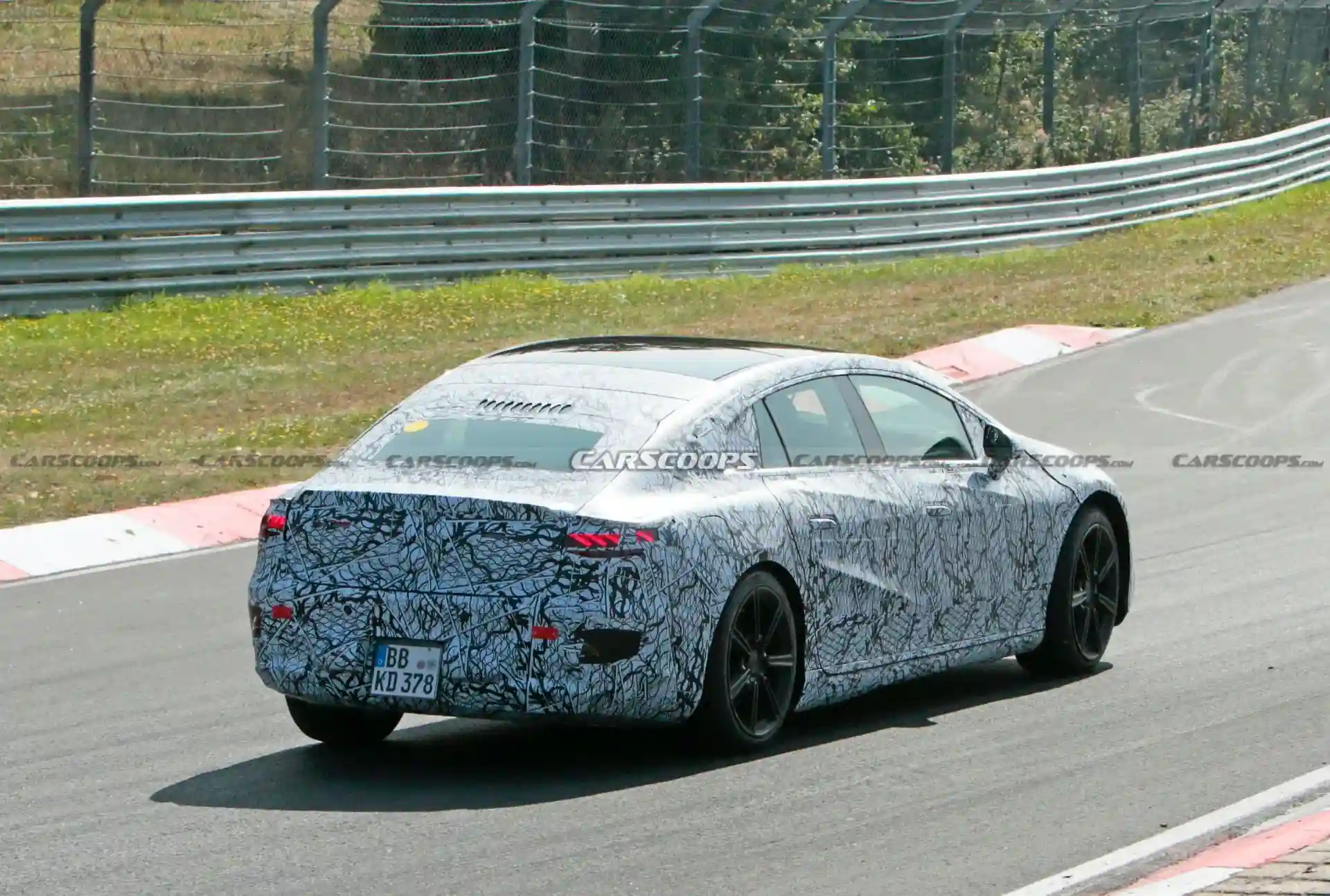 Электрический седан Mercedes-Benz EQS 2022 года стал еще ближе к дебюту: прототип электрического флагмана марки замечен на Нордшляйфе. Опубликованные Carscoops шпионские фото прототипа были сделаны в день дебюта на Нюрбургринге электромобиля Audi e-tron GT.