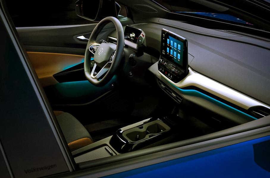 Volkswagen поделился новыми подробностями о пока еще не представленном электрическом кроссовере VW ID.4. Опубликованные изображения салона сопровождаются информацией об «умной» подсветке с 30 цветами на выбор.