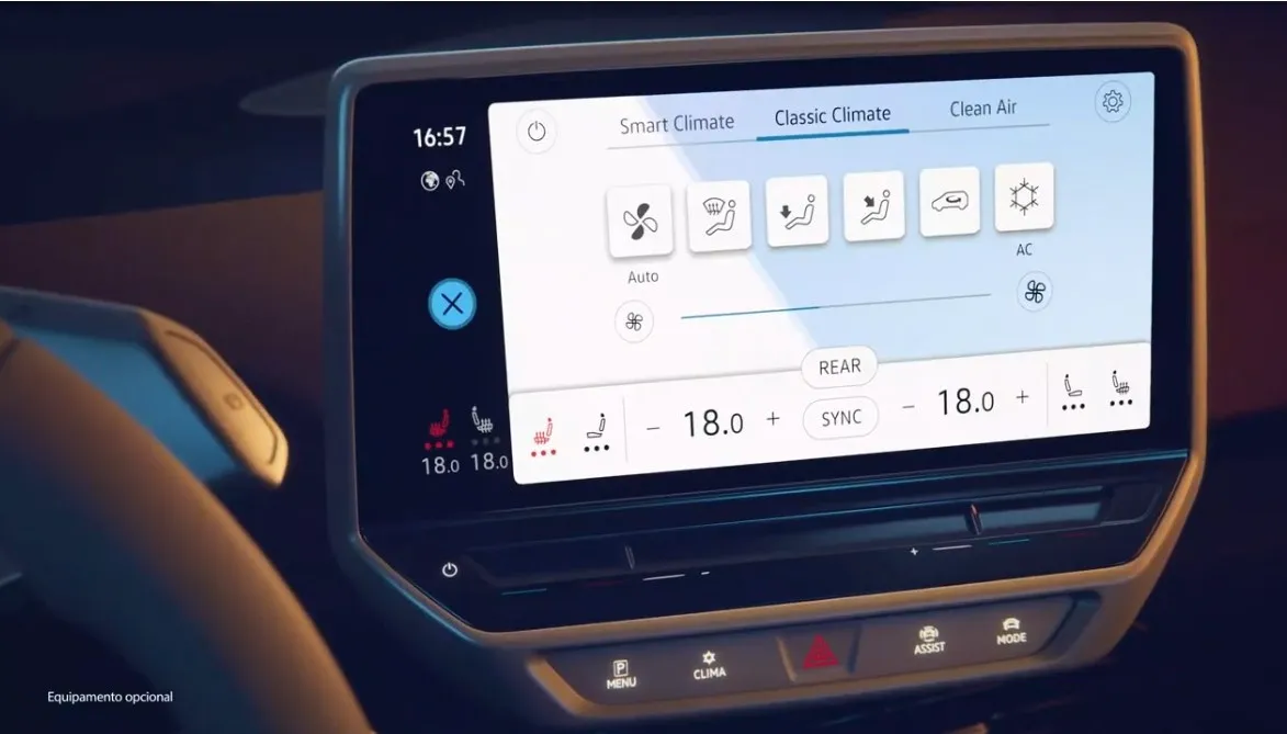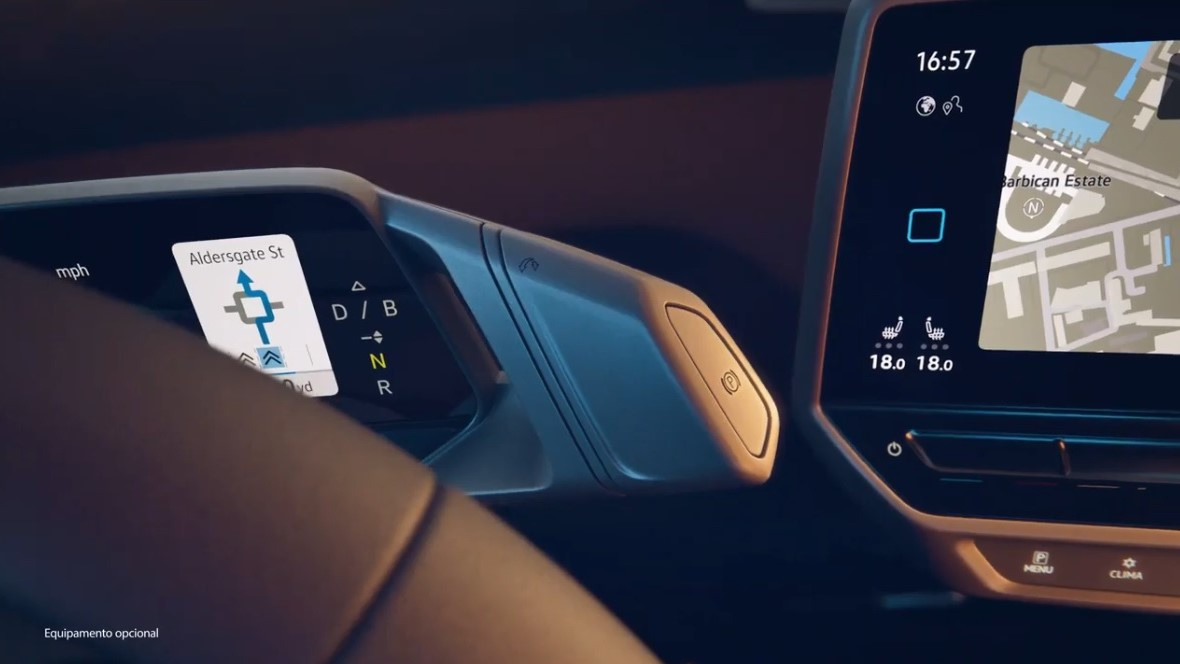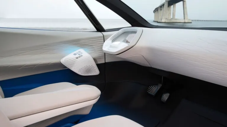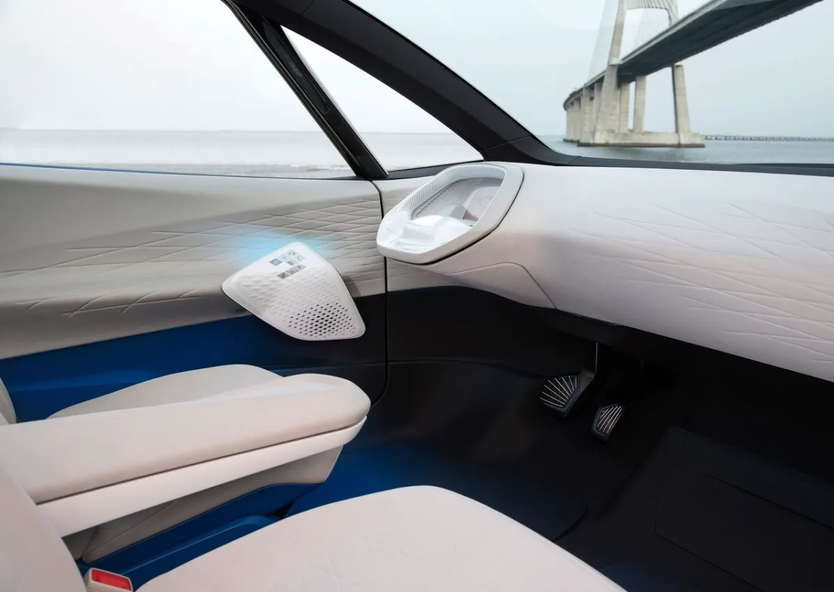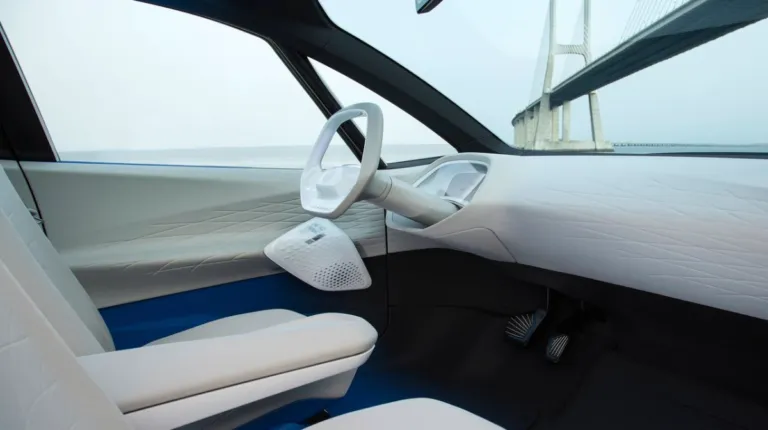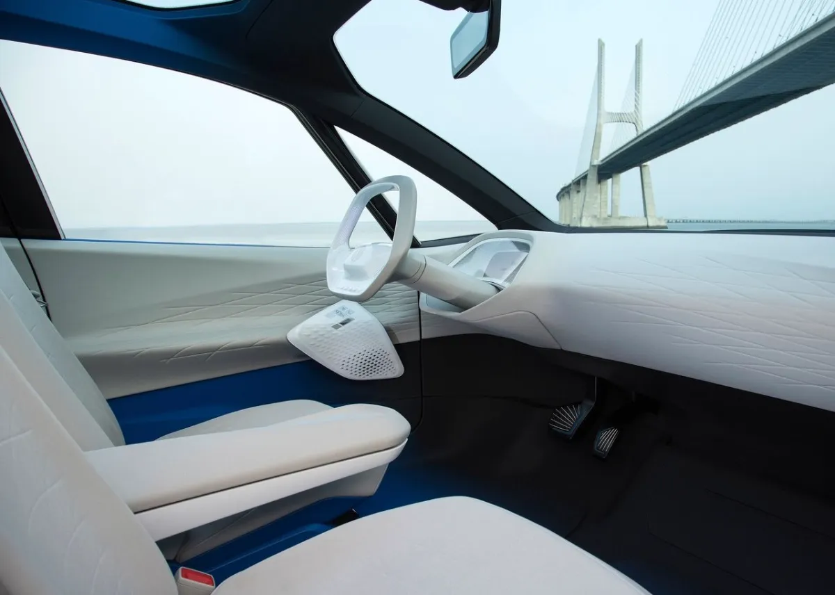 Незважаючи на те, що ми не бачимо інтер’єр цілком, а лише окремі його деталі, вже можна сказати, що всередині новий елеткромобіль Фольксваген зовсім не схожий на концепт-провісник (фото нижче в галереї), особливо якщо враховувати висувне рульове колесо прототипу, яке може ховатися в передній панелі. Зрозуміло, до серійного автомобіля таке рішення не дійшло.