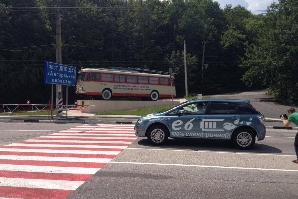 Понятно, что требовать от самодельных электромобилей большой дальности хода не стоит. Да и от прогулочных электрокаров, которые предназначены для перевозки людей и грузов на короткие расстояния – тоже. Но в колонне автопробега участвовал автомобиль, который несколько дней ранее установил рекорд дальности пробега по этому же маршруту (Симферополь-Алушта-Ялта-Севастополь-Николаевка-Саки-Евпатория-Симферополь) длиной в 358 км – BYD e6. Он преодолел это расстояние на одном заряде батареи, правда, в режиме рекорда – на перекачанных шинах, без использования кондиционера, аудиосистемы, навигатора и других прелестей комфортабельного передвижения.