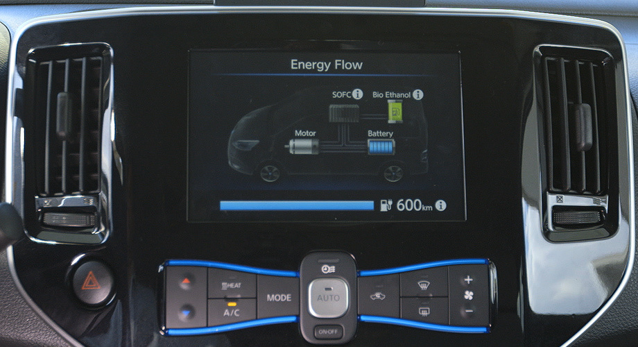 У дослідному прототипі комірки SOFC розвивають потужність 5 кВт і підживлюють тягову батарею ємністю 24 кВт•ч (її можна заряджати і від мережі). Бак для спирту на 30л і сама літієва батарея в сумі дають змогу машині проїхати понад 600 км на одній заправці. Вихідний e-NV200, для порівняння, має дальність ходу 170 км в європейському змішаному циклі.
