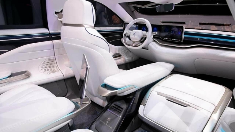 Говорячи про дизайн представницького седана, Кевін Райс зробив акцент на поєднанні сучасних технологій і розкоші. Електромобіль отримав систему розпізнавання осіб, кілька дисплеїв у салоні, зокрема і пасажирські, а також ексклюзивні оздоблювальні матеріали.