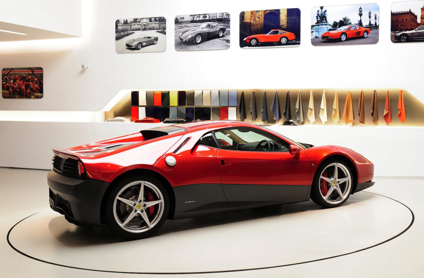 Кузов новинки был переработан, чтобы в нем безошибочно угадывались мотивы модели-донора. В целом, дизайнеры в той или иной степени с задачей справились, но, если честно, можно было бы проявить и больше рвения: вертикальные блок-фары вместо горизонтальных у прототипа безошибочно выдают, что за Ferrari перед вами. Еще легче было бы переделать выпуск – поставить 4 патрубка выхлопной системы, как у оригинала, вместо трех. На фоне этого наивно было бы предполагать, что под капотом окажется V-12 как в любимом авто Клептона – практически со стопроцентной вероятностью можно полагать, что там традиционный для 458 Italia V-8, а шильдик SP12 – дань моде и еще одна деталь, которую дизайнеры все же не поленились изменить.