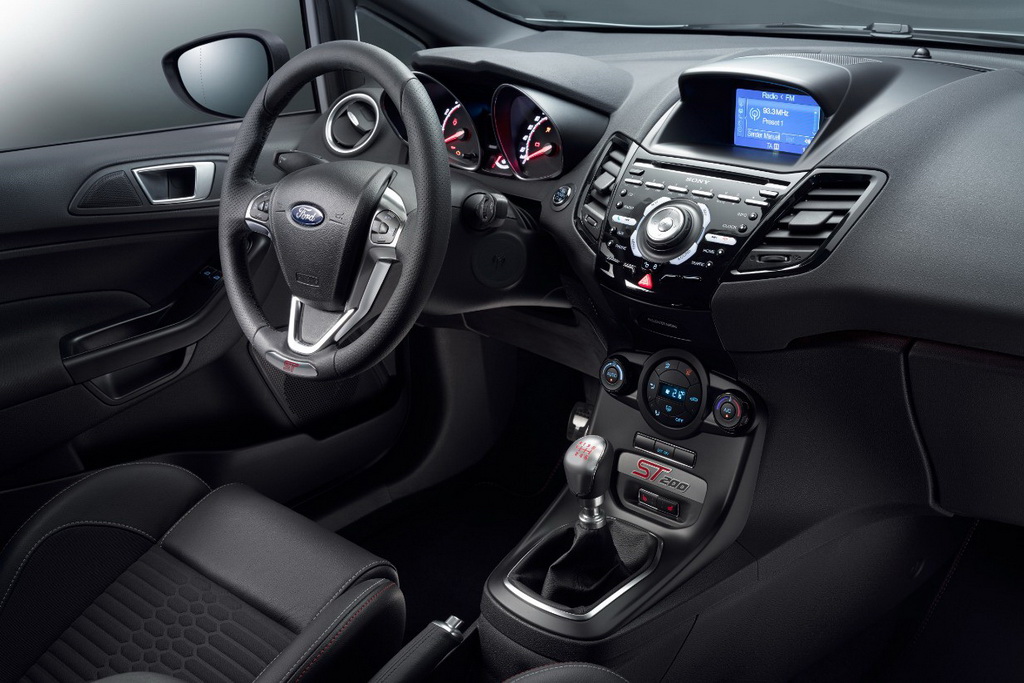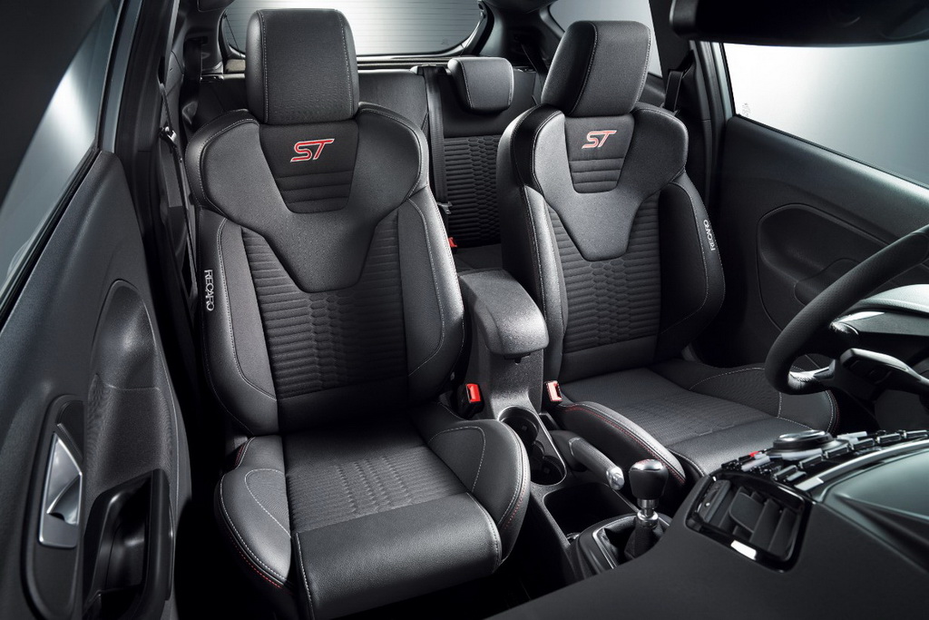 У салоні встановили спортивні крісла Charcoal Recaro, прикрашені контрастними сріблястими стрічками, накладки на пороги з логотипом ST200, вуглепластикові накладки на приладовій панелі, перфоровані педалі та спортивний важіль КП, а також характерне для моделей ST кермо.