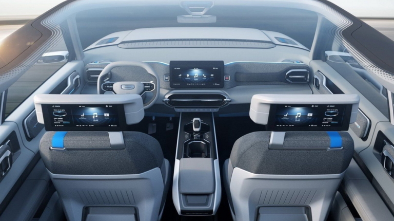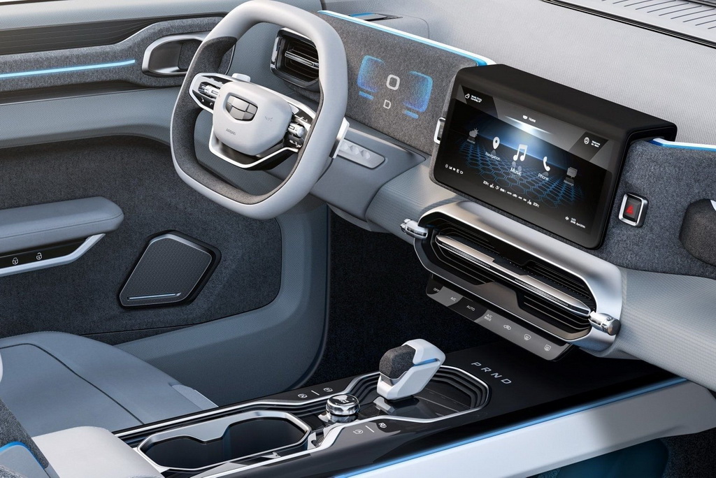 В числе дизайнерских изысков Geely Icon – вентилируемый капот, пластиковые защитные накладки и совершенные с точки зрения аэродинамики колесные диски. Доступ в не менее футуристичный салон обеспечивают распашные двери без центральных стоек.