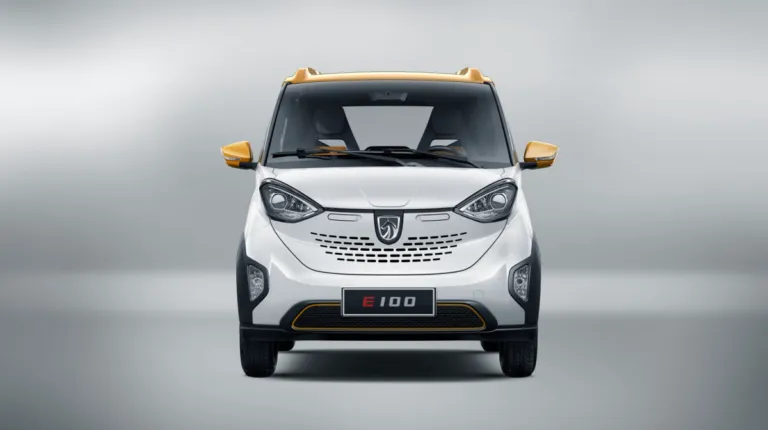 Baojun E100 – двухместный городской автомобиль длиной менее 3 м. В дизайне передней части чувствуется влияние Smart новейшего поколения.