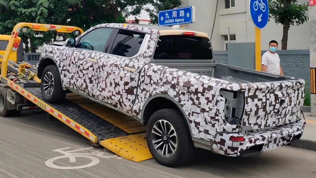 От слов к делу компания перешла очень быстро и выпустила на тесты первые прототипы пикапа. Один из них и попал в объективы фотошпионов. Несмотря на плотный камуфляж, можно точно сказать, что товарный вариант будет отличаться от шоу-кара. У модели изменились фары и задние фонари. Теперь они перекликаются с Tank 600. Решетка радиатора поменяла свое наполнение и лишилась хрома.