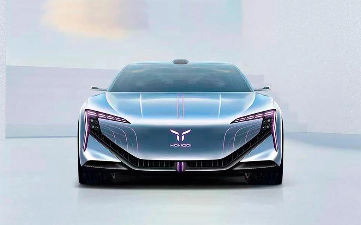 «Ніс» седана прикрашає ексклюзивний логотип Hongqi New Energy. Світлодіодні денні ходові вогні виконані у формі серпа, а фари з'єднані із V-подібною смугою, що окреслює закриту передню панель. Над лобовим склом встановлено лідар. На місці традиційних бічних дзеркал заднього виду — невеликі камери.