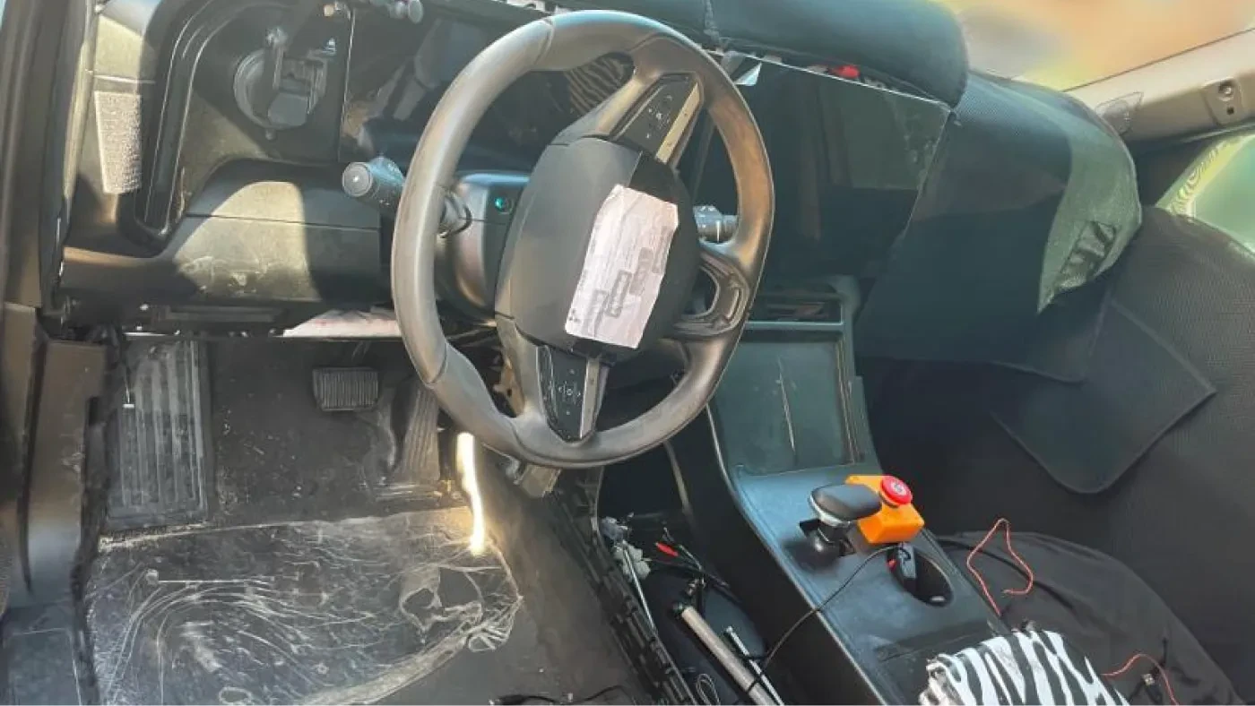 Як видно на фото, на передній панелі Stone 01 EREV розташувалися триспицеве кермо з урізаним ободом та великий плаваючий сенсорний РК-дисплей. За деякими даними, передній пасажир матиме власний сенсорний дисплей, але на фото ця частина закрита камуфляжем.