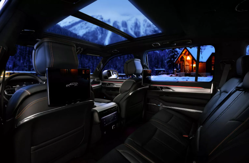 Також Grand Wagoneer повністю втратив хром в оздобленні та отримав колісні диски нового дизайну. Вони доступні в діаметрі від 18 до 22 дюймів. Зміни в салоні позашляховика мінімальні. З’явився новий проекційний дисплей та мультимедійна система Uconnect5 з 12-дюймовим екраном. Топова версія також отримала акустику McIntosh з 23 динаміками та холодильником.