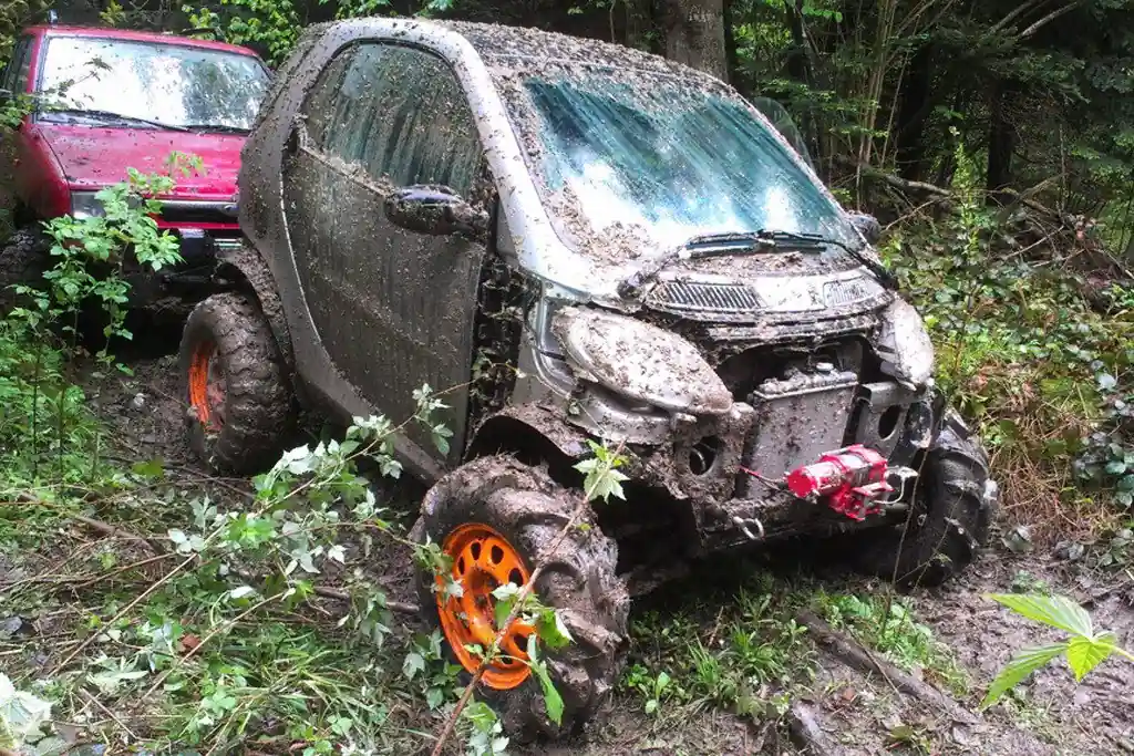 Самая трудоемкая работа заключалась в имплантация колесных редукторов, которые должны были поместится в 14-дюймовые диски. Все необходимые детали для этого проектировались два месяца и еще два месяца ушло на их производство - на двух разных предприятиях. Также внедорожный Smart ForTwo получил и понижающую передачу 1,54. На все про все ушло масса труда, терпения и почти 3000 «зеленых». Как бы там ни было, а Smart ForTwo получился эксклюзивным, которому не страшно даже тяжелое бездорожье.