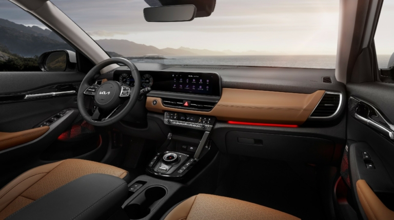 Також новинці дісталася нова колірна палітра для кузова, яка охоплює і двоколірні варіанти, і 18-дюймові колісні диски зі стильним дизайном. Салон Kia Seltos 2023 виглядає не менш сучасно. У його оснащення увійшов величезний екран, який об’єднує в собі 10,25-дюймову цифрову приладову панель і мультимедійну систему. Аналогічне рішення можна побачити більшого Sportage та інших моделей компанії.