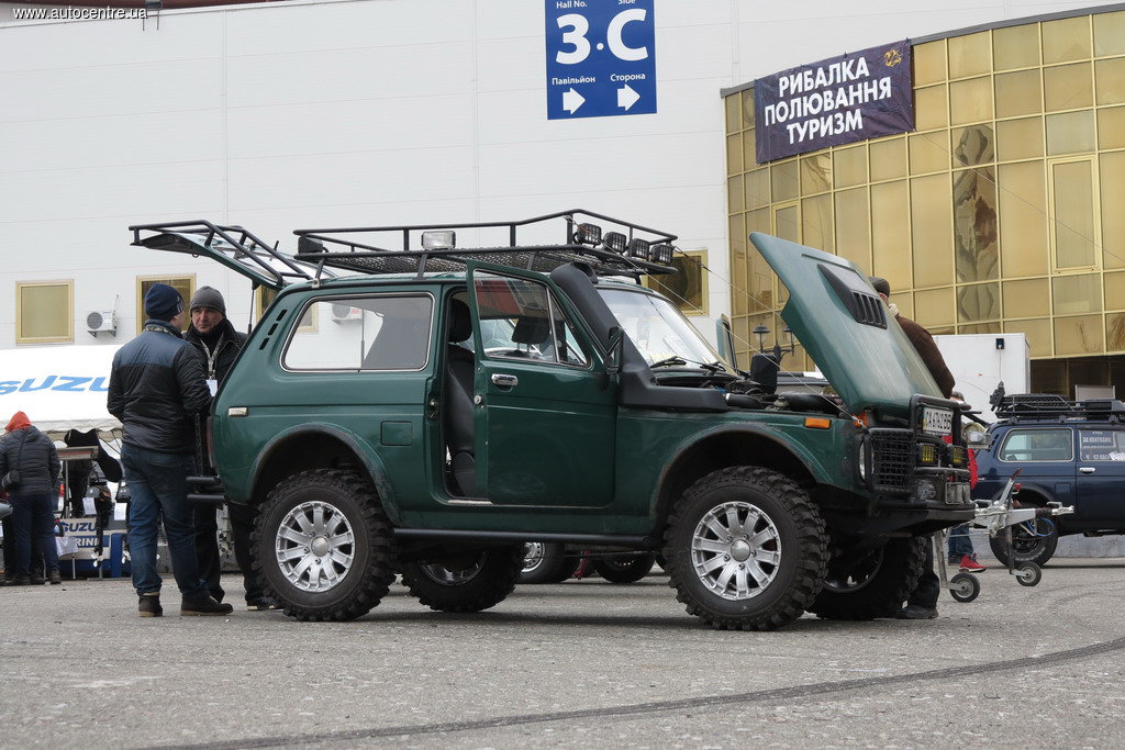 На открытой площадке представлены также тюнинговые автомобили ВАЗ «Нива». Так, столичное ателье «Тюнинг Нива» (ФОП Черникова), которое поводит профессиональную подготовку автомобилей «Нива» и «УАЗ» для активного отдыха и спорта (трофи/ралли рейдов), показало «Ниву Hunter». Машину отличает доработанная подвеска и дизельный двигатель Peugeot мощностью 120 л.с. Совсем не узнать и салон – появилась приборная панель и рулевое колесо от Opel Vectra и модерны кресла с развитой боковой поддержкой.