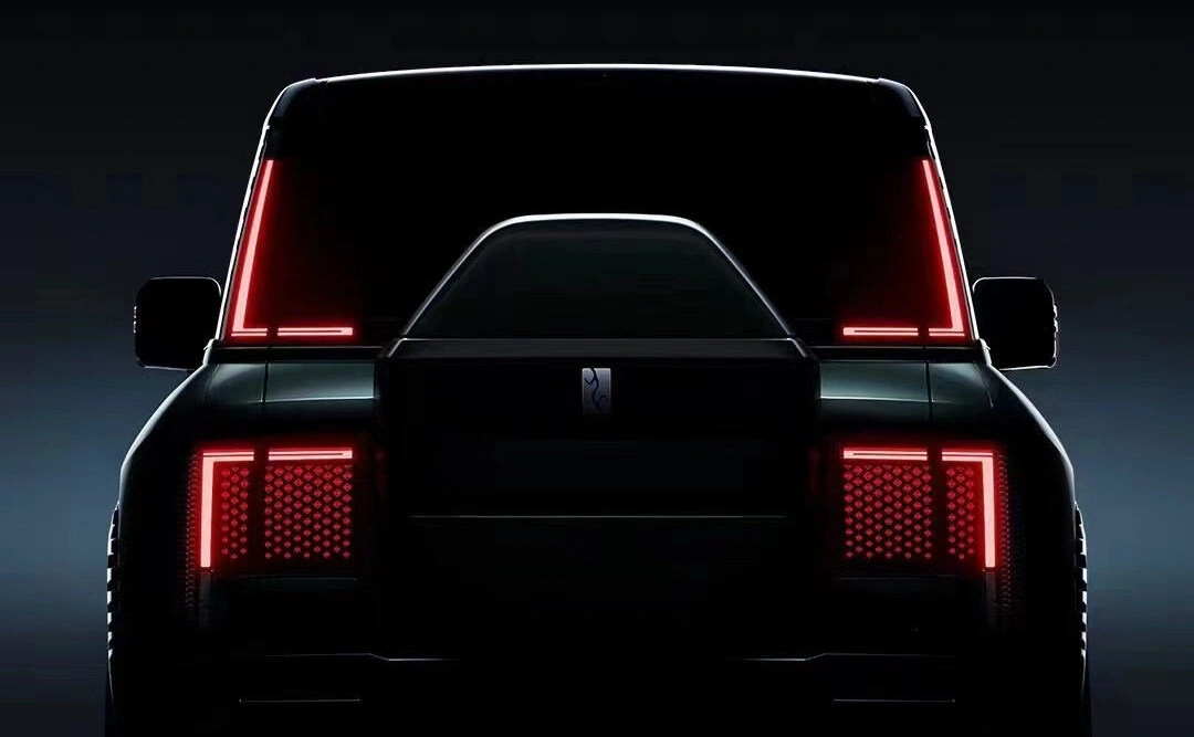Судячи зі знімку, BYD готує повнорозмірний позашляховик із брутальним незграбним екстер'єром, який нагадує нещодавно представлений гібридний Tank 500 від Great Wall. У автомобіля практично вертикальні задні стійки кузова, масивні колісні арки та пластиковий чохол для запасного колеса на багажних дверях. Задня оптика у позашляховика двоярусна з нижніми прямокутними «піксельними» ліхтарями та L-подібними верхніми блоками. На задньому склі — L-подібні стопсигнали.