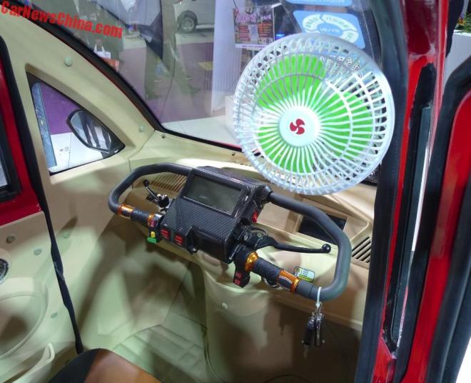 У салоні Byvin Xiaozhuangyuan E-Ass — звичайний кімнатний вентилятор, екран приладової панелі та дисплей системи мультимедіа, яка охоплює радіо, MP3 і MP4-плеєри. Керуєш машиною за допомогою модернізованого керма від донорського мопеда.
